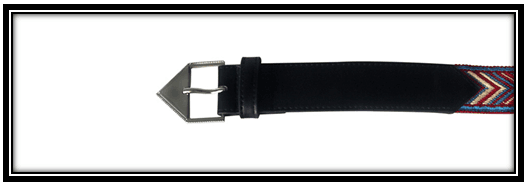 Main body of belt is stripy fabric.