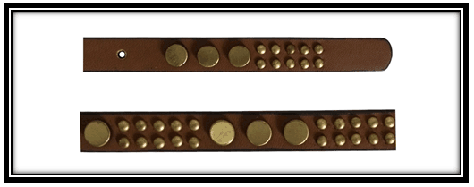 Faux leather Roller buckle closure Anti brass finish nail head accents