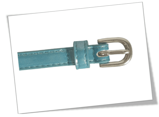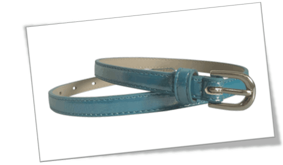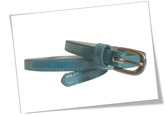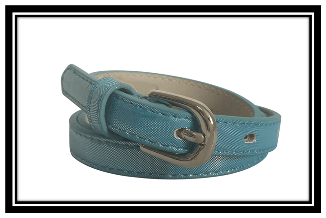 This is a girls belt made of Shining PU in blue with a nickle polish buckle.