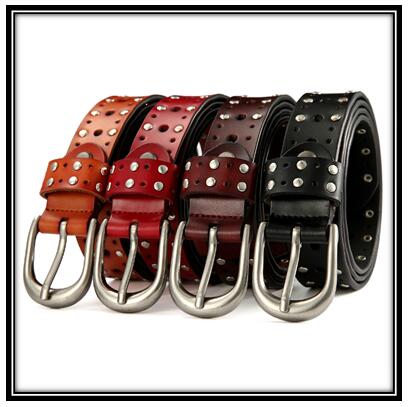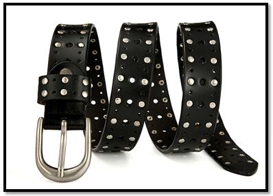 A.Product Name: HongDing Black Cowhide Leather Hollow-out Rivet Belts with Alloy Buckle for Women