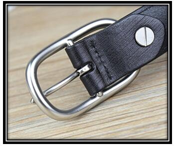 A.Product Name: HongDing Black Genuine Cowhide Leather Narrow Belts with Central Bar Buckle for Men