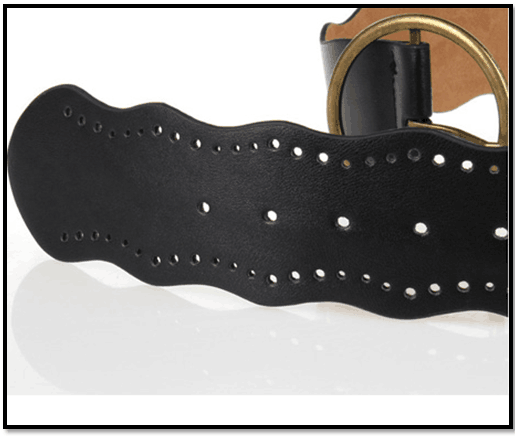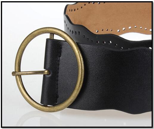 HongDing Black Retro Wide Irregular Hollow-Out PU Belts With Bronze Ring Pin Buckle For Women have wavy design,Retro design bronze round buckle and design of the aft smooth arc.The belts opposite side is comfortable suede, very smooth, have good texture.