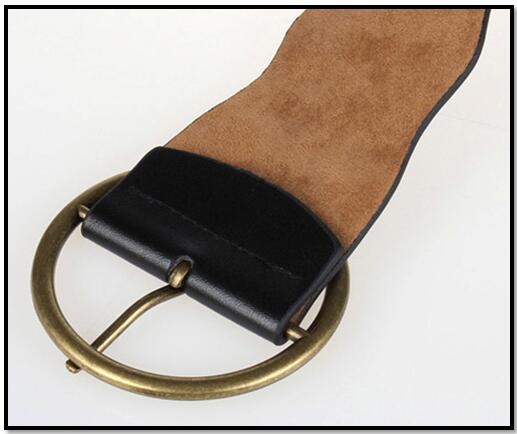 A. Product Name: HongDing Black Retro Wide Irregular Hollow-Out PU Belts With Bronze Ring Pin Buckle For Women