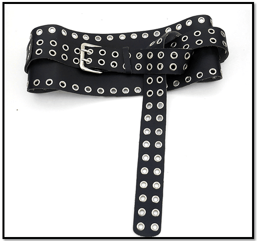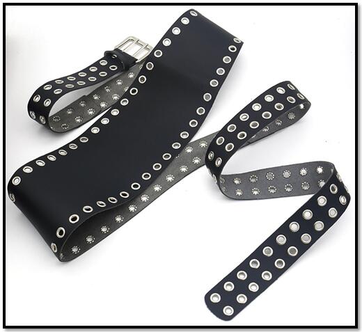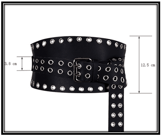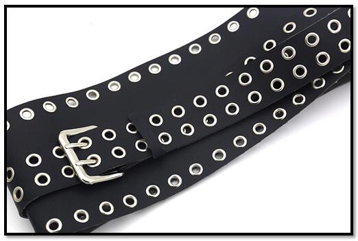 A.Product Name: HongDing Black Rivet Waist Sealing Hollow-Out PU Belts with Double Pin Buckle for Women