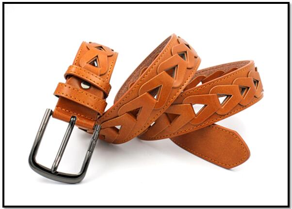 A. Product Name: HongDing Light Brown Braided Hollow-Out PU Belts With Pin Buckle For Women and Men