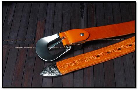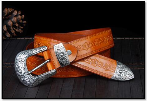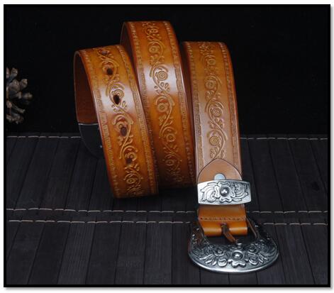 A.Product Name: HongDing Yellow Genuine Leather Carved Belts with Pin Buckle Retro Three-Piece Belt for Women
