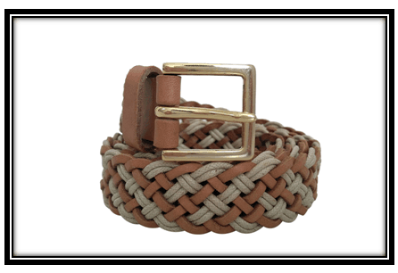 Main body of belt is braided leather and cotton.