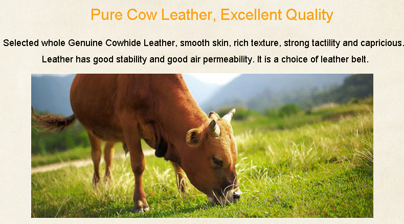 High quality wear-resistant cowhide, leather belt surface glossy, comfortable, leather belt is very soft, and at the same time have the leather air permeability, feel comfortable, show the quality!
