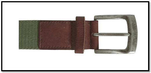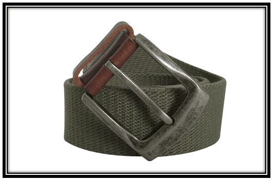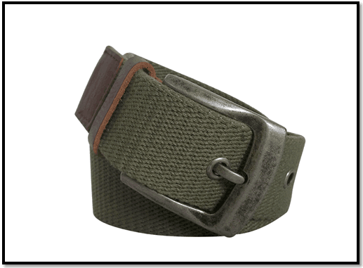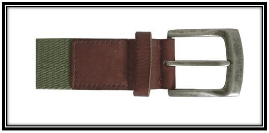 Dark Green webbing belt for men, with brown leather trim.