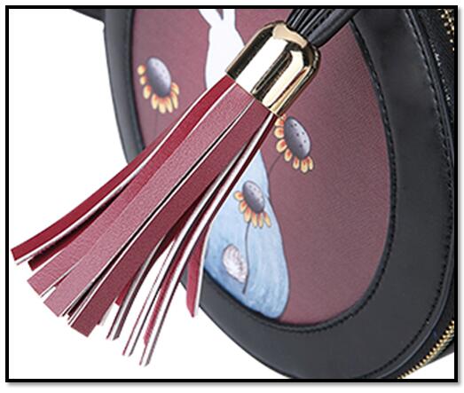 HongDing Round Lovely Girl Shoulder Bags High Quality PU Leather Handbags For Women with Tassel,the inside of bag is a document bag, and a hidden zipper bag. Bags are sealed with a zipper, which can be used as shoulder bags, cross-body bags or handbags.