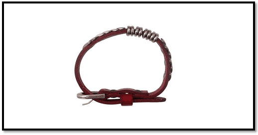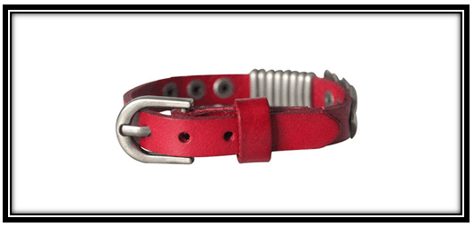 this red leather bracelet for women exudes authentic European style. The wristband bracelet features nickle polish accents. It closes with a leather toggle.