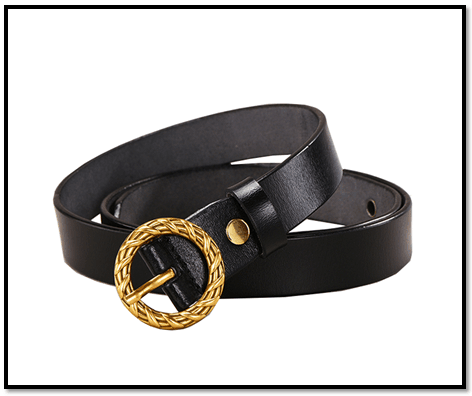 HongDing Black Genuine Leather Belts With Golden Round Pin Buckle Retro Jeans Belt For Women,The belt is carefully cut from the entire length of the leather, with the finest quality of the leather, nice and soft, and the back of the belt is made of a leather suede.